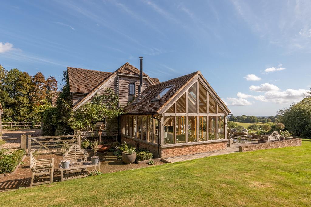 Occupying a semi-rural setting, on the outskirts of the much sought after village of Benenden, this striking family home enjoys stunning far reaching views over the rolling Kentish countryside. The property benefits from well-proportioned, versatile accommodation, a detached triple garage currently used as a games room with mezzanine level, attractive garden and an expansive, elevated, paved terrace with an inset pond and a pergola, providing the ideal space for outside entertaining.