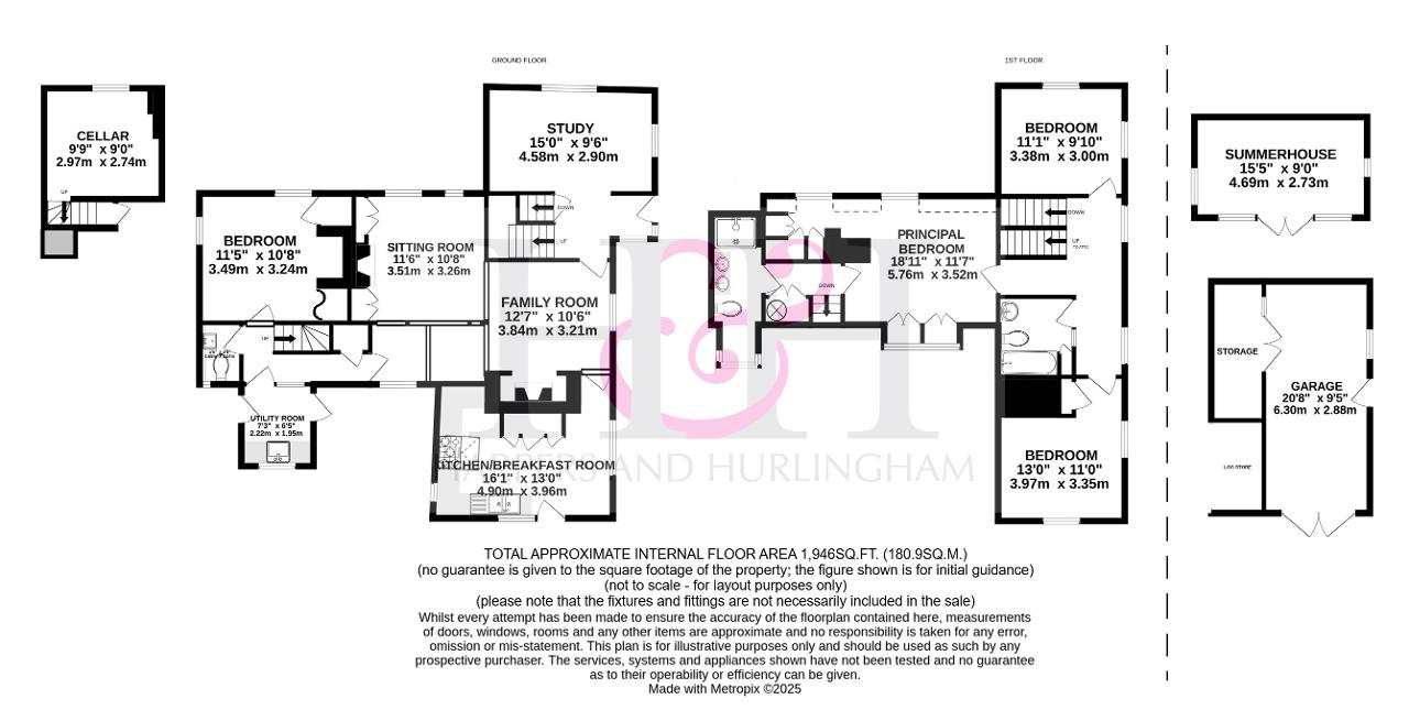 There is a partially boarded attic with natural light, and a cellar that has served as a wine store.
