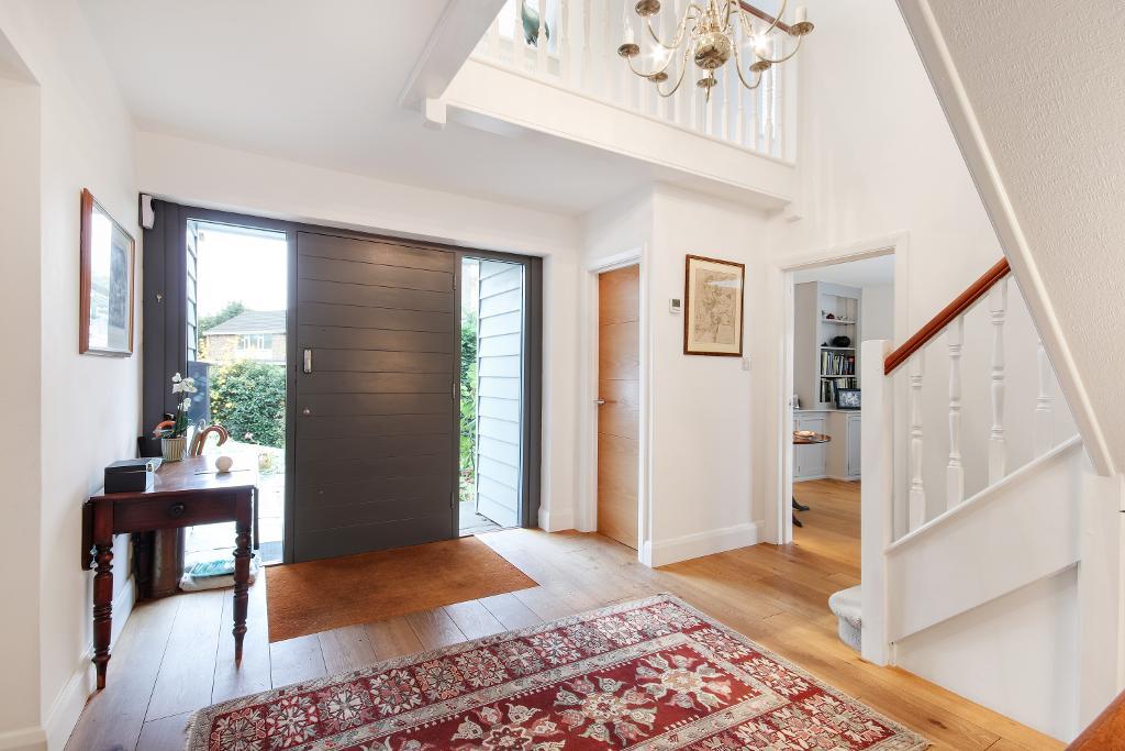 This striking detached family home underwent complete modernisation and remodelling during 2013/14. Sitting at the far end of a no through road in the village of Hawkhurst, and within easy walking distance of the local amenities, the property is set in just under an acre and enjoys far reaching views beyond its own garden and shared lake.