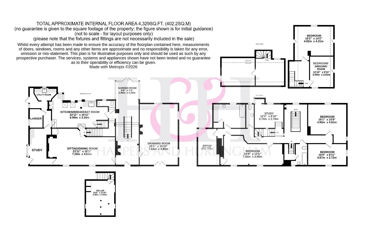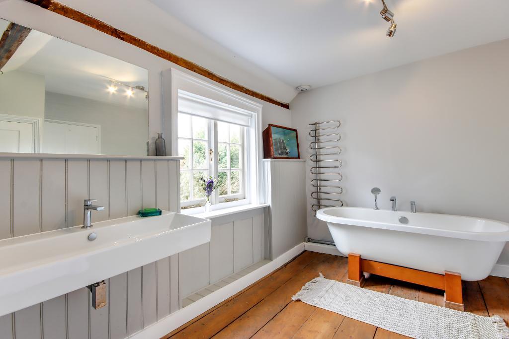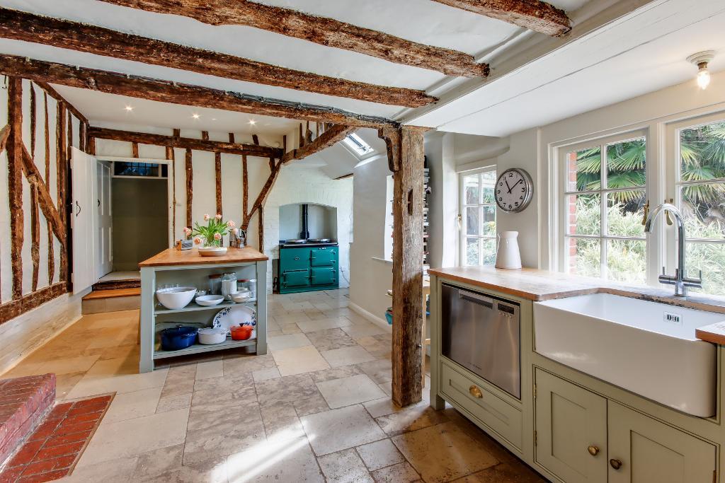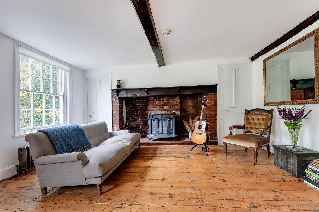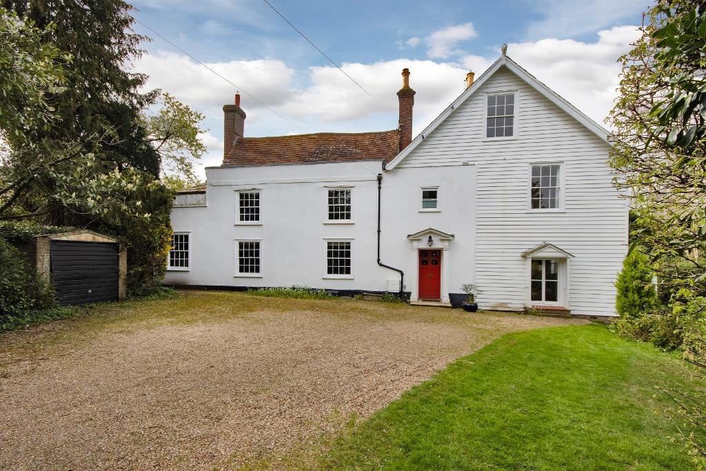 A white-painted wooden hawk keeps watch from the roof over this striking Grade II Listed village house, sitting in gardens of approximately 0.6 acres, tucked away in a secluded position within a short walk of Waitrose, the Kino independent cinema and the other extensive amenities in the village of Hawkhurst. The original wing dates from the early 18th century with later 19th century additions and many character features from both eras are exhibited over the three storeys including high ceilings, sash windows, exposed beams and floorboards, inglenook fireplace and original servants" bell.