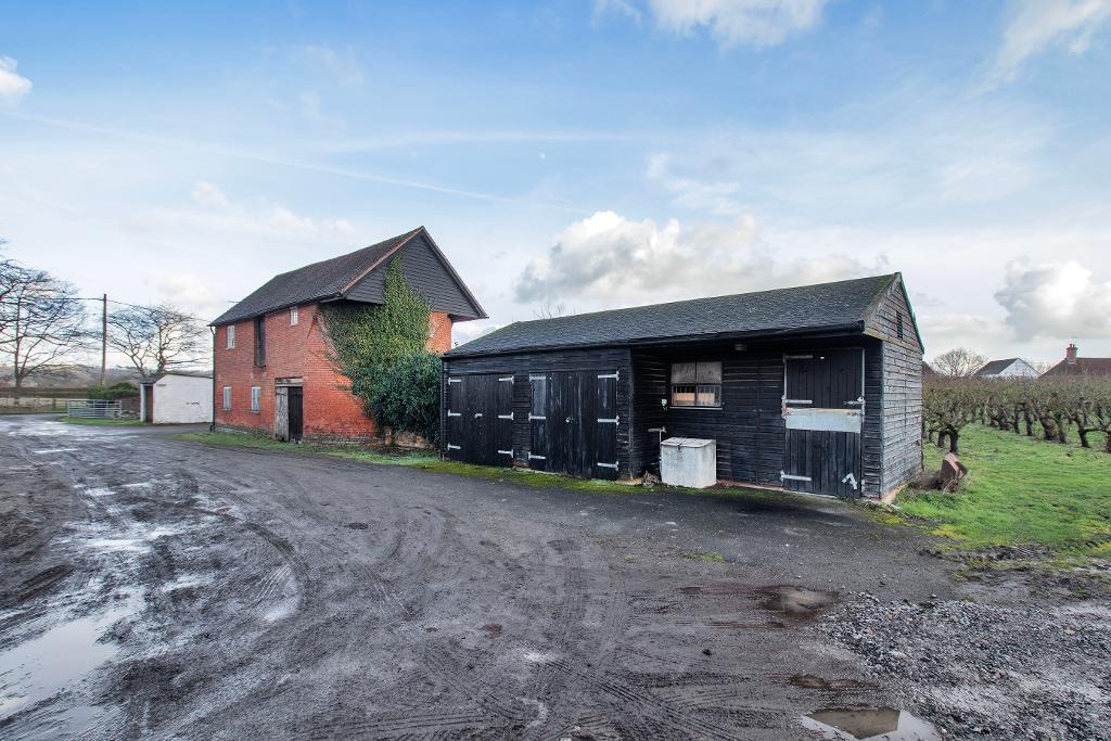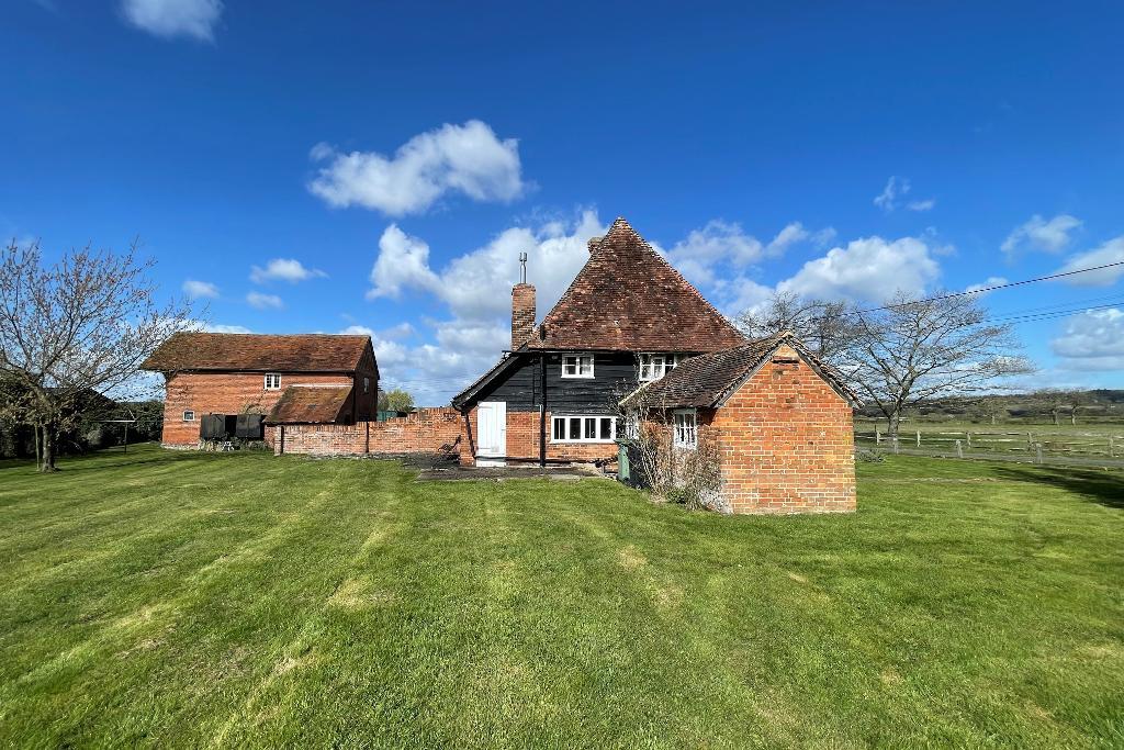 The property includes several notable outbuildings, including a detached, unconverted oast, ripe for conversion (subject to the necessary consents), and a stable with attached storage, all sitting in garden and grounds of approximately 2.3 acres including a pear orchard.